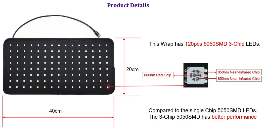 TENS Electrodes Pads 660nm 850nm Pain Relief LED Red Light Therapy Wrap